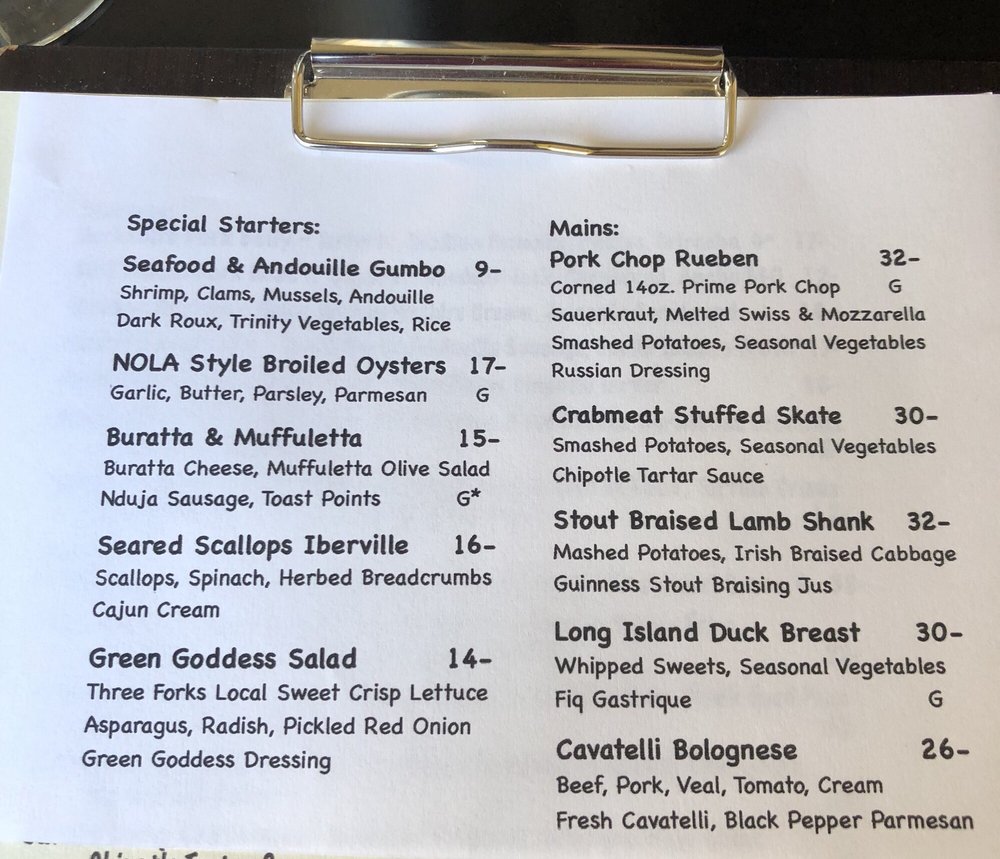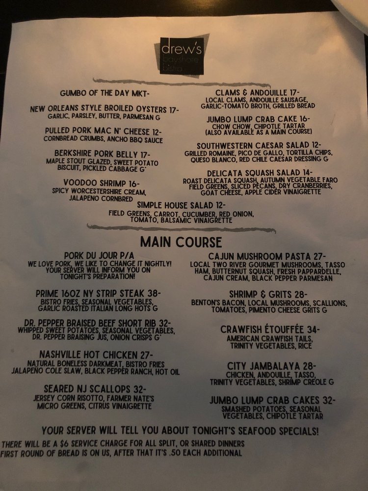 Drew's Bayshore Bistro Menu